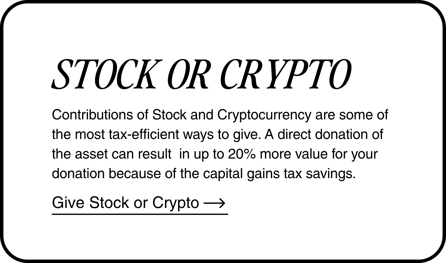 You can give your Over and Above gift safely and easily through Overflow — our giving platform that allows you to donate cash, stock, or crypto in a fast and secure way. Simply visit our giving page, choose Over and Above from the drop-down options, and follow the steps to complete your gift.